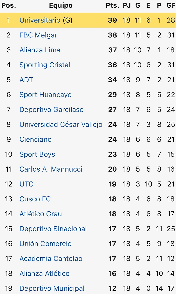 Завершился второй круг перуанской Лиги 1, он же Клаусура. Борьба за победу в Клаусуре в последних турах получилась не такой яркой как ожидалась. Теперь в финале нас ждёт перуанское классико - Университарио против Альянсы Лимы. Зато интереснее получились противостояние за попадание в Копа Судамерикана и борьба за выживание.