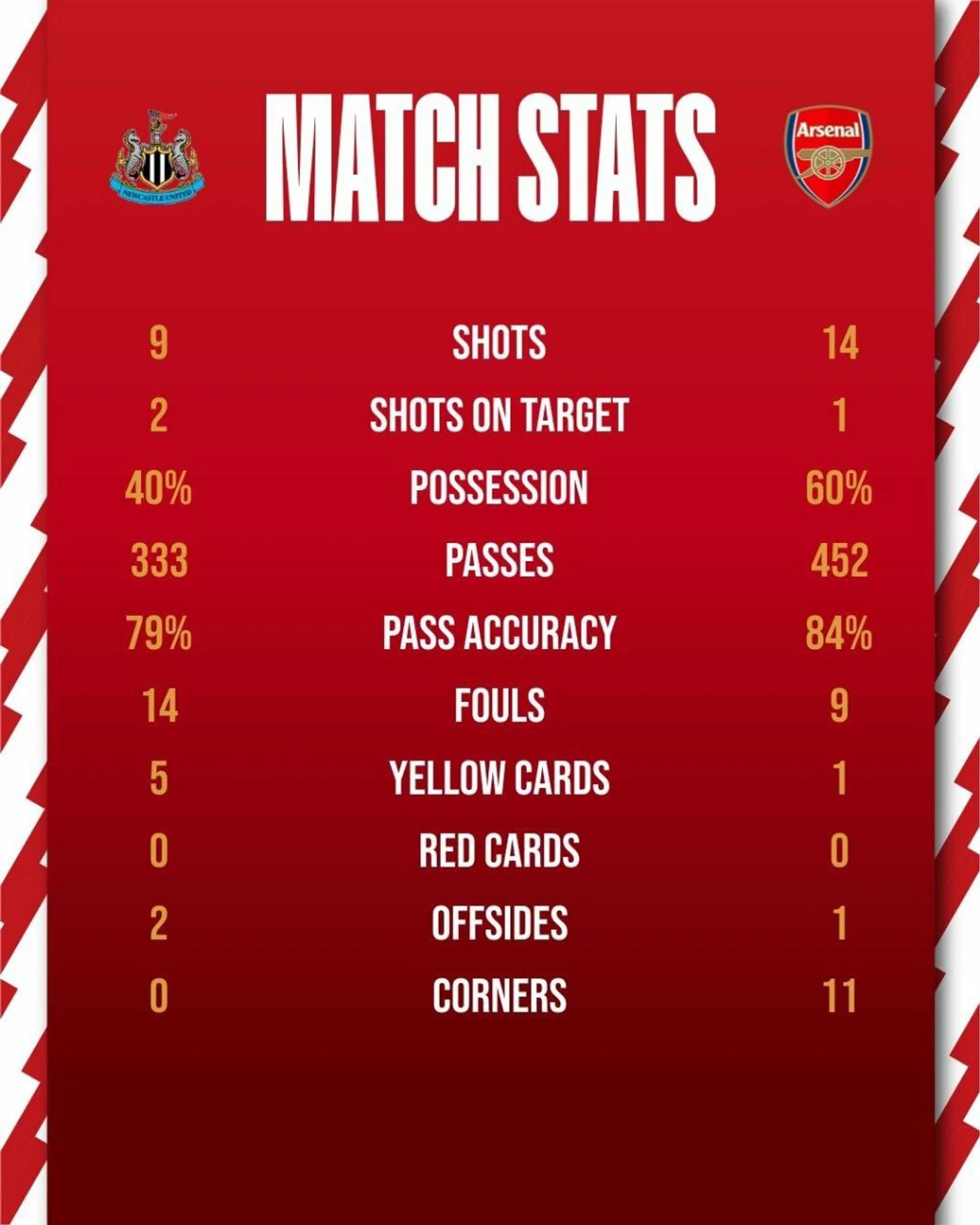 Хочется отметить комментарии в духе, «Арсенал на победу не наиграл, ибо 1 удар в створ» и здесь я просто показываю статистику за 90 минут матча , где всё становится понятно.Крайне сомневаюсь, что с двумя ударами в створ «Ньюкасл» заслужил победу.Очень сомневаюсь