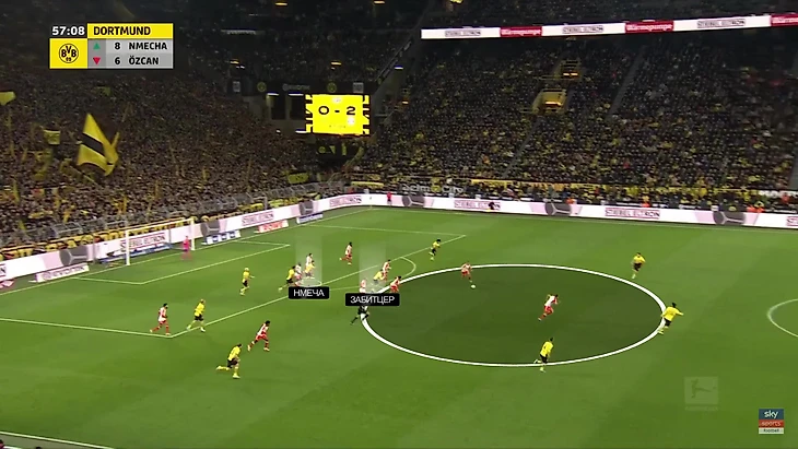 Типичная ситуация, когда команда рискует и играет без чистого опорника. Из оставшихся на поле ближе всех к этой роли был Забитцер, но в действиях без мяча он оказался ужасен. Марсель способен работать в прессинге, но совершенно не умеет склеивать команду – это проявлялось и при потерях, и при обороне на своей половине. Ход матча подкинул австрийцу работу, с которой он не справляется. Вообще, лучший для таких сценариев в «Боруссии» – Эмре Джан, но он пропускал игру из-за травмы.