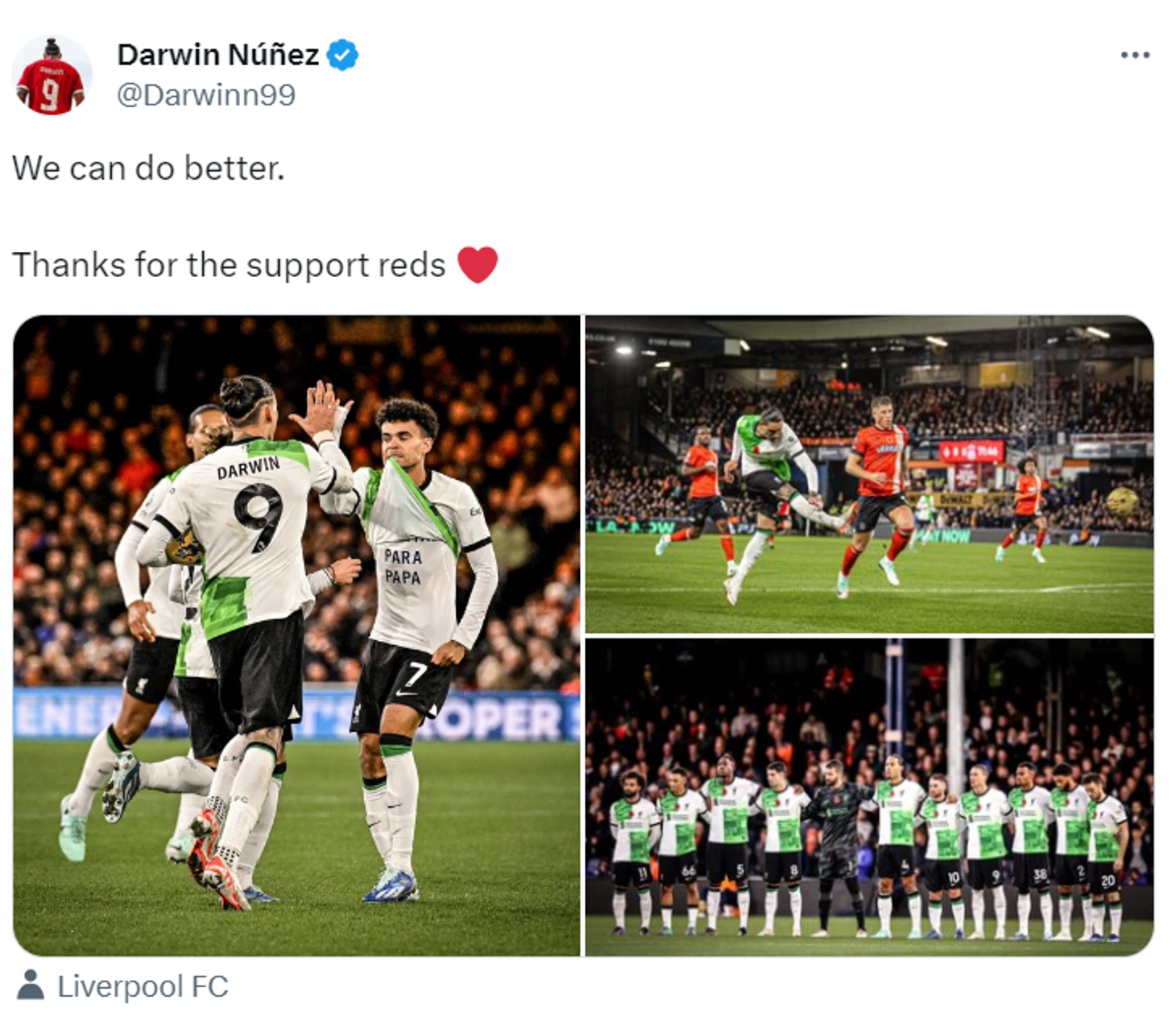Единственный гол «Ливерпуля» в игре с «Лутоном» на свой счет записал Луис Диас. Вингер отметил взятие ворот, показав футболку с призывом освободить его отца. Папу Луиса похитила Армии национального освобождения Колумбии (АНО). Мужчина до сих пор не освобожден.