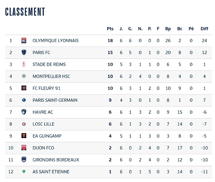 • «Дижон» снова сыграл в результативную ничью. Поначалу гостевая встреча с «Гавром» проходила нерадостно: Лори Канс отличилась первой, Саломе Элизор удвоила преимущество «саламандр». Во втором тайме «красные» вернулись и отыгрались благодаря голам Латифы Абду и Леи Деклерк с пенальти. Микаэла Кардия вывела «Гавр» снова вперёд, но для победы этого не хватило – в компенсированное время Осеан Пикар сравняла счёт, вырвав для «Дижона» лишь второе очко в этом сезоне. Первое было добыто в эпичной битве с «Лиллем», завершившейся с таким же счётом (3:3).