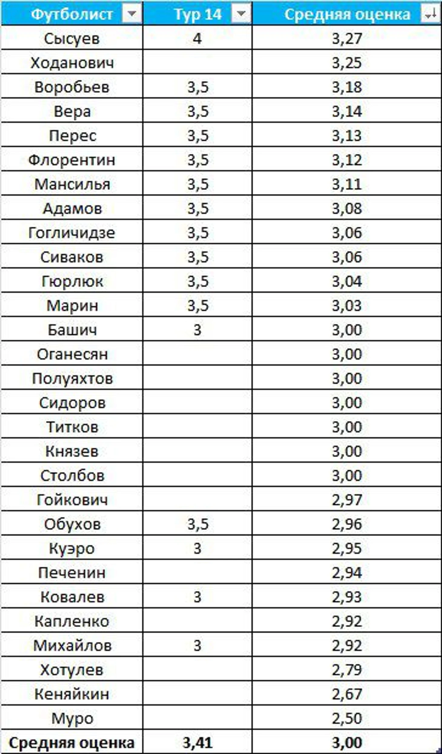 4 получает Сысуев, благодаря которому команда пропустила меньше, чем была должна. На мой взгляд, сейвы в матче с «Ростовом» были даже тяжелее, чем в игре с «Зенитом». Николай выходит в лидеры по средней оценке за сезон. Вообще не очень хороший знак, что у команды, которая находится в зоне стыков, лучшими игроками являются вратари.