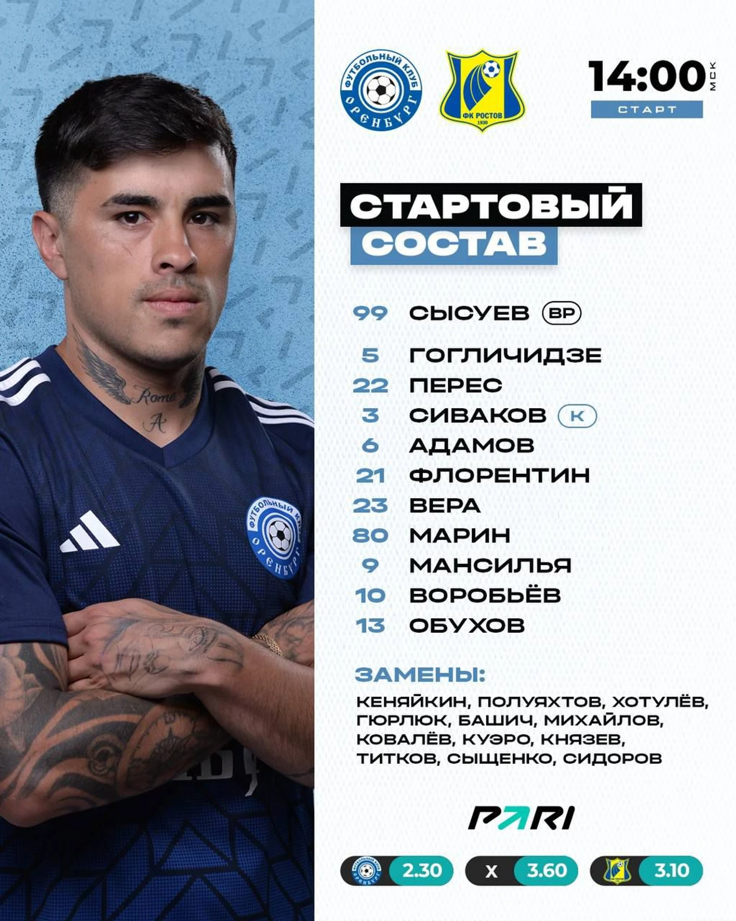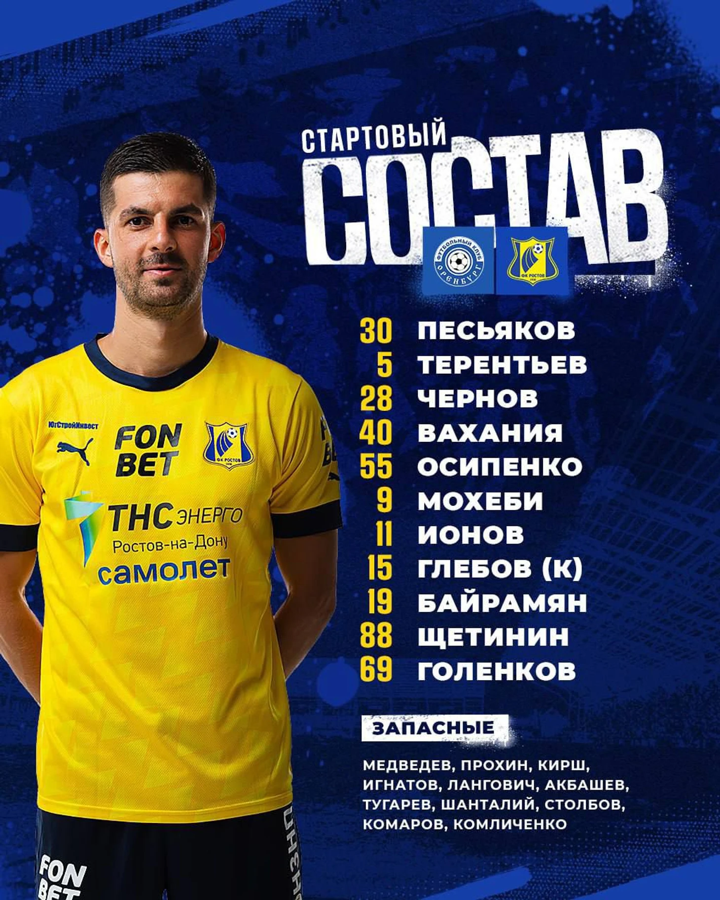 У «Ростова» вместо дисквалифицированного Мелехина в центре защиты выходит Терентьев. Миронов травмирован. Отсутствует Уткин.