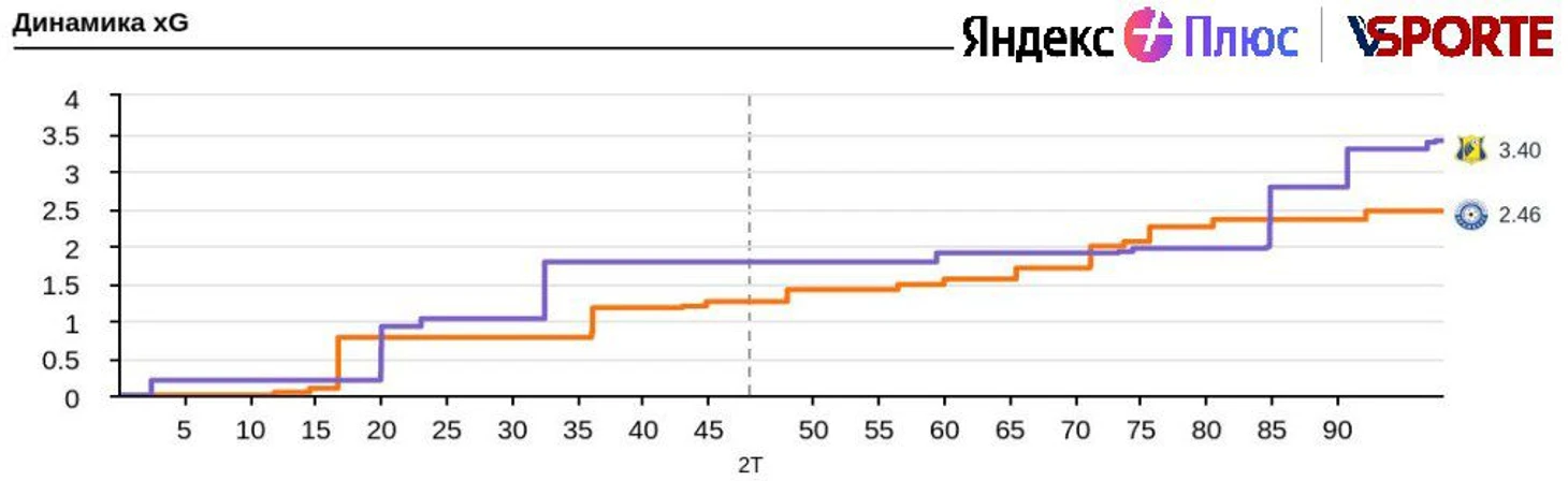 «Оренбург» проиграл по XG (2.46-3.40). Привет «профессиональному» журналисту, заявившему Карпину об огромном преимуществе «Оренбурга». Удары 18-16 в пользу хозяев, атаки 56-65 в пользу гостей, владение мячом 44%-56%.