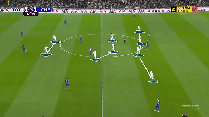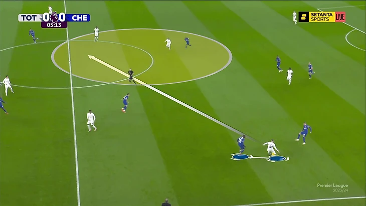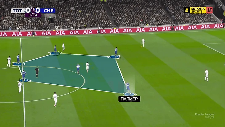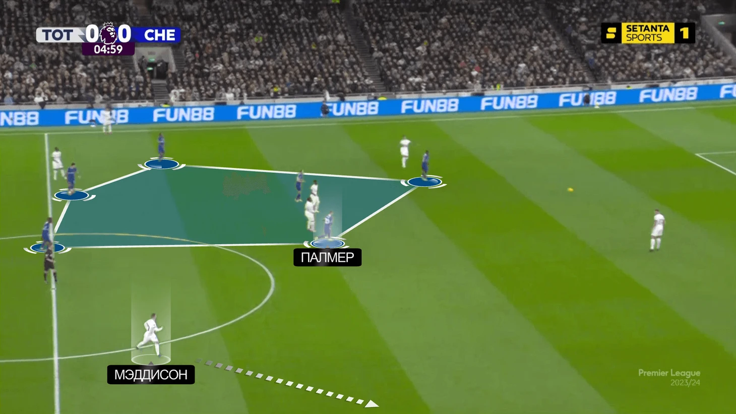 Вероятно, Эндж Постекоглу учел это при подготовке. «Тоттенхэм» целенаправленно разыгрывал через зону, которую Палмер оставлял, чтобы пойти в давление. Использовали разные приемы, но самым частым были опускания Джеймса Мэддисона:
