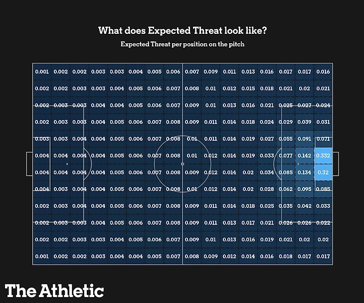 Есть статья от the Athletic от 2021 года. В ней автор строит свою матрицу переходов ("модель xT") используются данные за три сезона АПЛ (2018-2019, 2019-2020, 2020-2021)