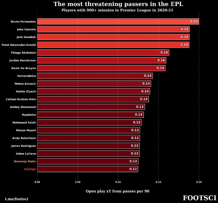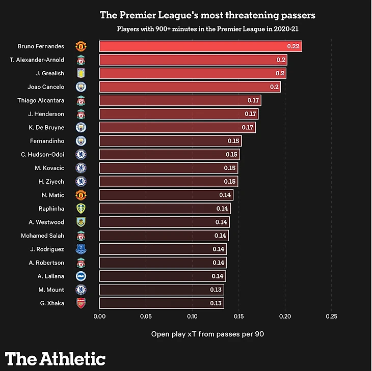 Также приводится отдельный рейтинг по xT только для передач.