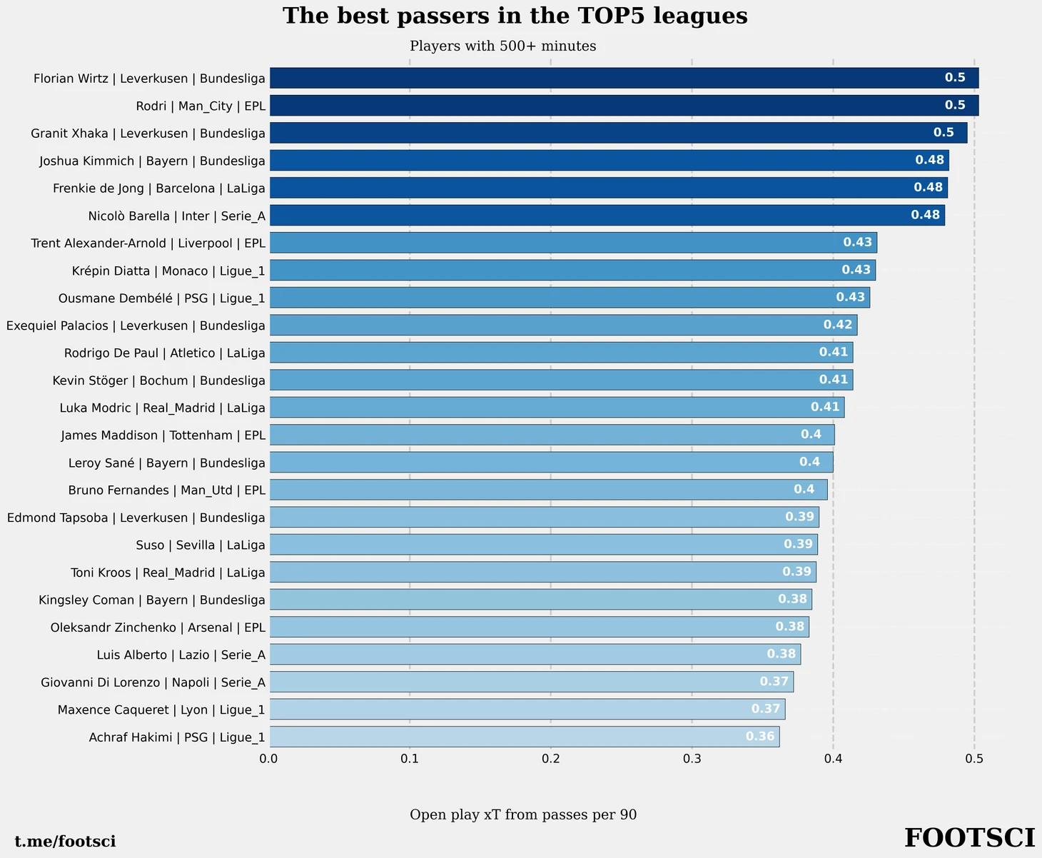 Рейтинг лучших игроков по опасности передач с игры по метрике xT.