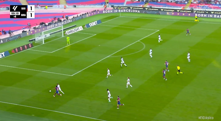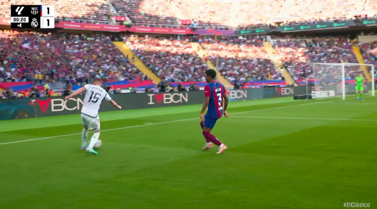 Выиграв борьбу, Федерико, продолжая оставаться под давлением, сделал первую передачу в цепочке на Карвахаля почти от угловой отметки.
