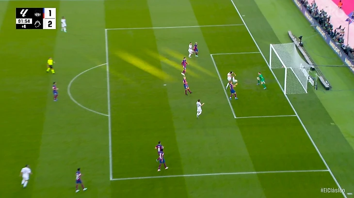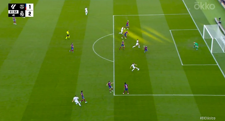 Далее после быстрого продвижения мяча в финальную треть и нескольких последующих смен направления затяжной позиционной атаки Реала, Карвахаль сделал передачу в штрафную на Модрича. Хорват, пытаясь обработать непростой мяч, сделал легкое голевое касание, которое решающим образом изменило траекторию мяча и повлияло на исход эпизода.