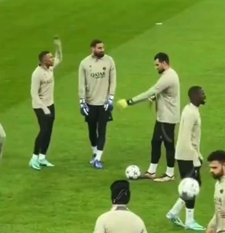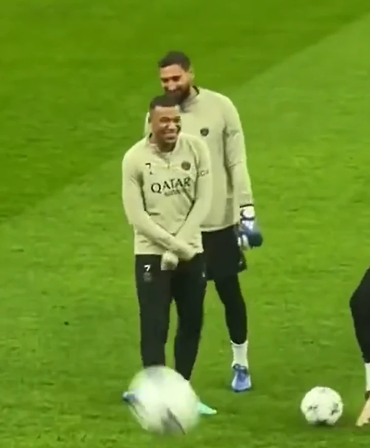 Парижане провели тренировку на домашней арене «россонери». Когда футболисты вышли на поле, Килиан подошел к голкиперу, поднял руки и с улыбкой на лице начал выкрикивать фамилию итальянца.
