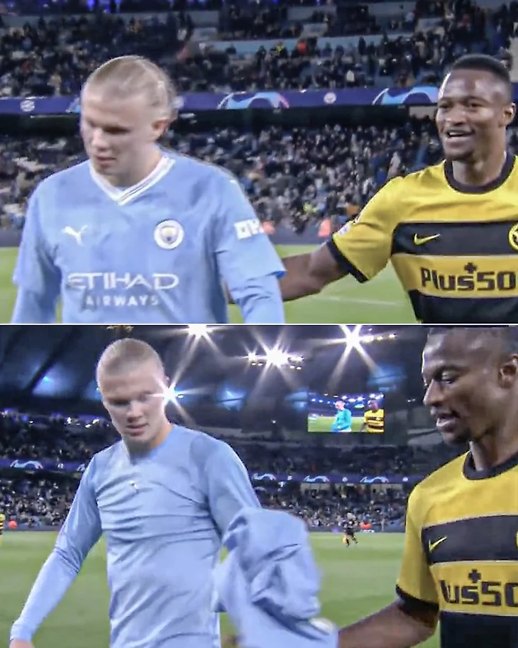 Эрлинг Холанд забил уже в первом тайме матча с «Янг Бойз», а после свистка на перерыв к нему подошел один из соперников.