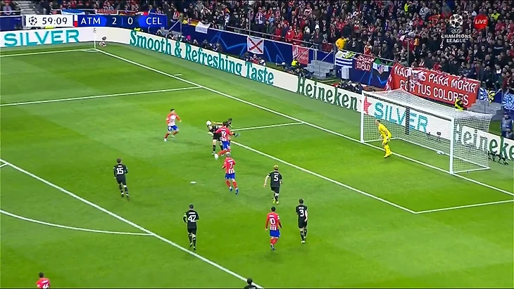 Мяч так и остался в штрафной, а Гризманн моментально сгруппировался и забил красивым ударом.
