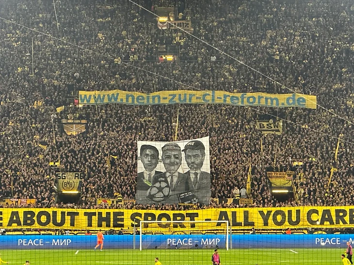 Цели немецких фанатов оказались более масштабными, чем испортить настроение Доннарумме. Дортмундцы недовольны новым форматом Лиги чемпионов, который вступит в силу уже со следующего сезона.