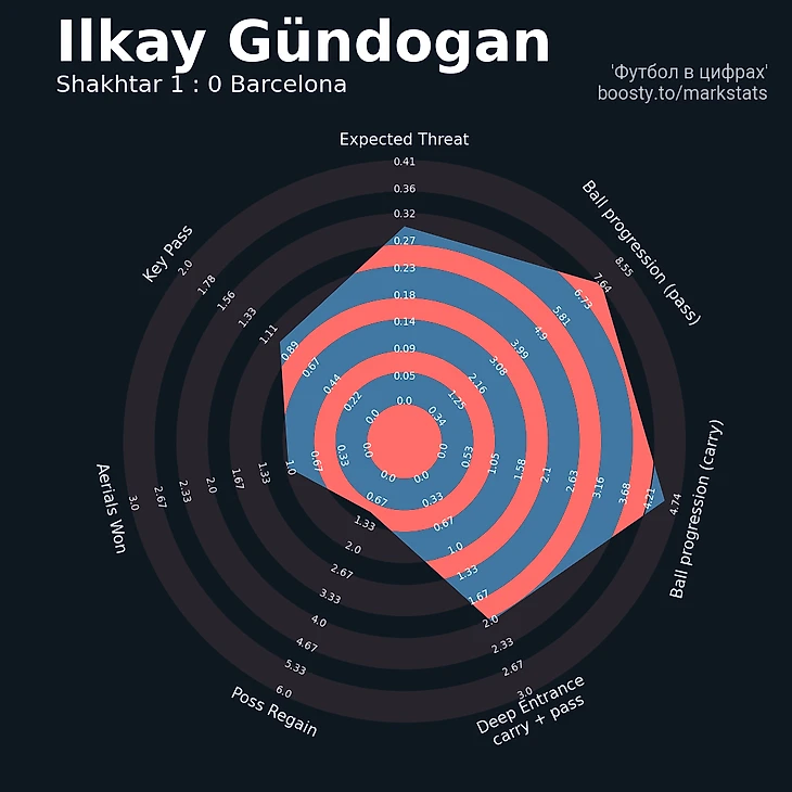 Что-то создавать пытался Гюндоган. Илкай – лучший в составе своей команды по продвигающим передачам (7), второй по очкам xThreat (0.3). У немца 98 передач с точностью 95%.