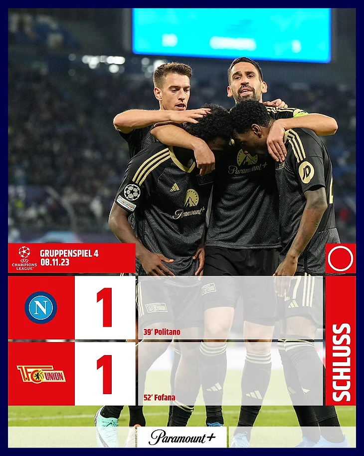 «Унион» берет свое первое очко в Лиге чемпионов. Более того, в пяти последних встречах «Наполи» с клубами из Германии лишь берлинцам удалось забить. Возможно, ничья в Неаполе вернет поклонникам футбола «Унион» образца прошлого сезона, как считаете?