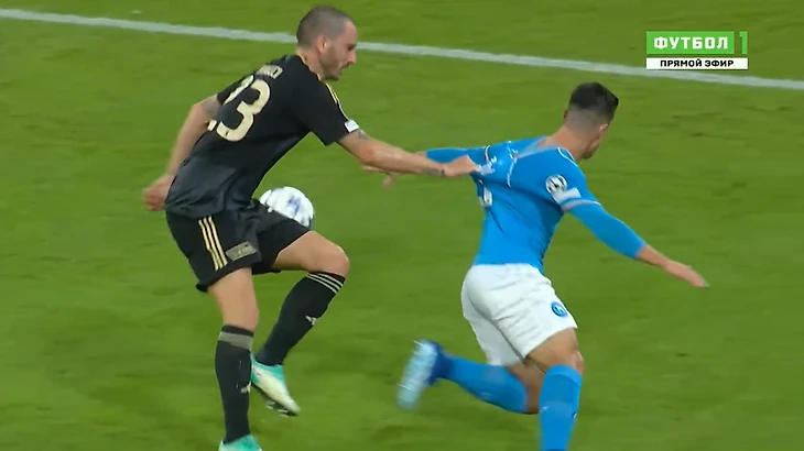 Кстати, в концовке тайма экс-игрок «Ювентуса» получил желтую карточку за фол в стиле Кьеллини.