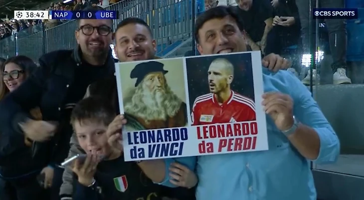 С неаполитанских трибун посыпались весточки для Бонуччи. Леонардо отлично знаком с местной аудиторией.