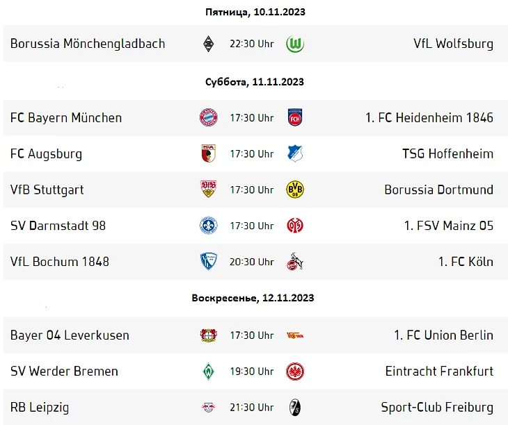 Превью 11-го тура Бундеслиги