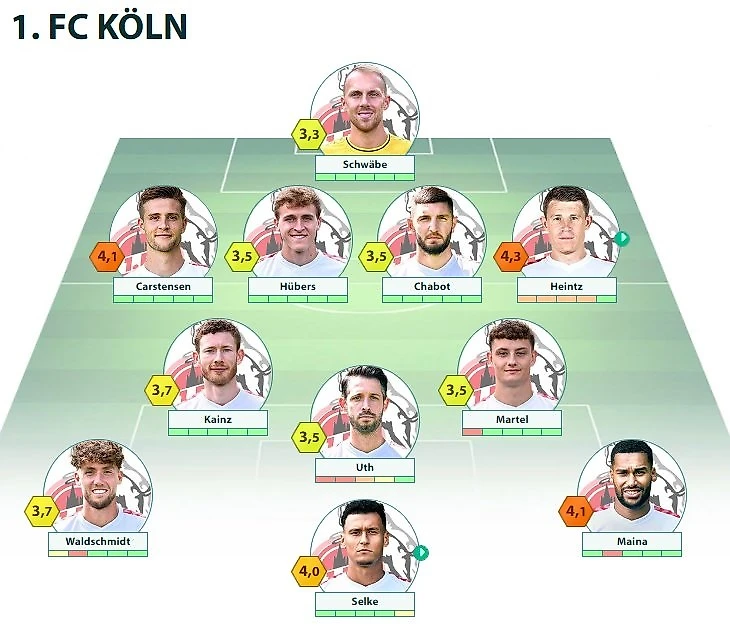 KOE: Schwäbe - Carstensen, Hübers, Chabot, Heintz - Kainz, Martel - Waldschmidt, Uth, Maina - Selke