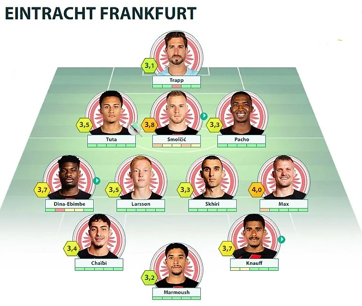 SGE: Trapp - Tuta, Koch, Pacho, Max - Skhiri, Larsson - Buta, Chaibi, Knauff - Marmoush