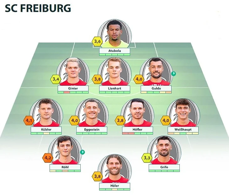 SCF: Atubolu - Kübler, Ginter, Lienhart, Makengo - Höfler - Weißhaupt, Eggestein, Röhl, Grifo - Höler