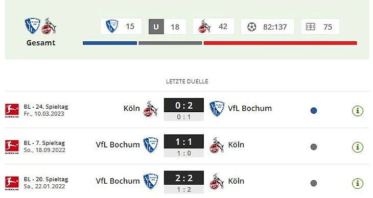 «Кёльн» проблеск надежды: «Кёльн» находится внизу таблицы в начале карнавальной сессии во второй раз в сезоне Бундеслиги. В восьмом туре, когда «козлы» единственный раз были последними в таблице, «ФК» одержал единственную победу в сезоне (3:1 над «Менхенгладбахом»). «Бохум» не выиграл ни одной из четырех последних игр против команд, занимающих нижние позиции (две ничьи, два поражения), в последней домашней игре «Майнц» вырвал возможную победу у бело-голубых в добавленное время.