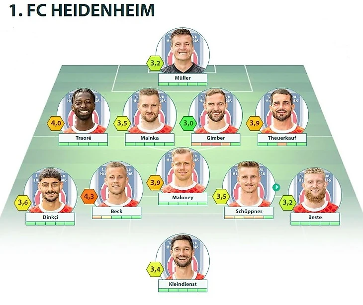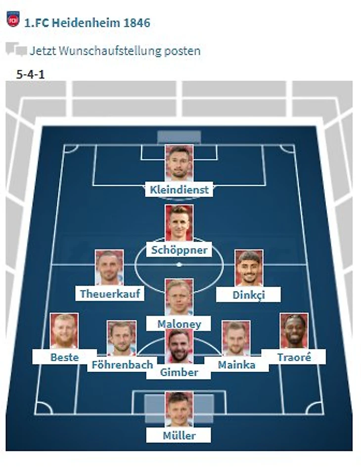 FCH: Müller - Traoré, Mainka, Gimber, Theuerkauf - Maloney - Beck, Schöppner - Dinkçi, Kleindienst, Beste