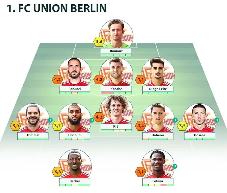 FCU: Rønnow - Jaeckel, Knoche, Leite - Juranovic, Král, Roussillon - Laidouni, Haberer - Becker, Fofana