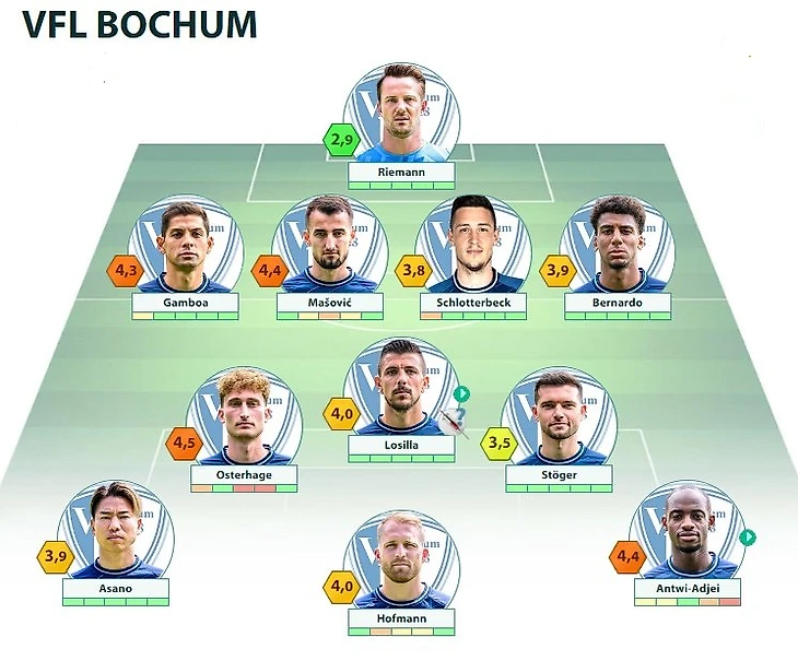 BOC: Riemann - Gamboa, Mašović, Schlotterbeck, Bernardo - Losilla - Osterhage, Stöger - Asano, Hofmann, Broschinski