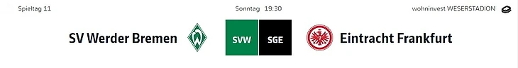 Сильный в форме и точный: «Айнтрахт Франкфурт» набрал десять очков в последних четырёх играх Бундеслиги – только лучшие команды из Мюнхена и Леверкузена находятся в ещё более лучшей форме и набрали по двенадцать очков в последних четырёх играх. «Франкфурт» может положиться на настоящего бременского эксперта в поединке с «Вердером»: Марио Гетце забил в Бундеслиге столько же голов в ворота «Гамбурга», сколько в ворота «зелено-белых» (по семь).