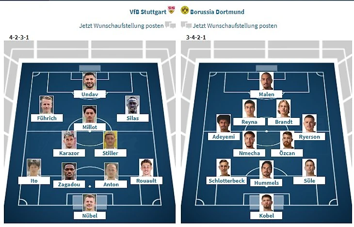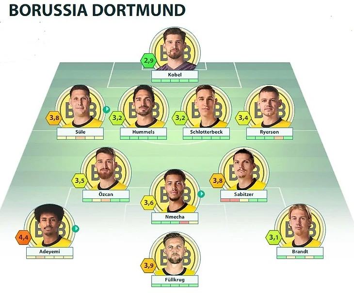 BVB: Kobel - Süle, Hummels, Schlotterbeck, Ryerson - Özcan, Sabitzer - Adeyemi, Nmecha, Brandt - Füllkrug