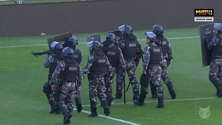 Когда нервничающих игроков показывали в туннеле, были слышны выстрелы. По версии Relevo, это полиция включилась сразу с резиновыми пулями.