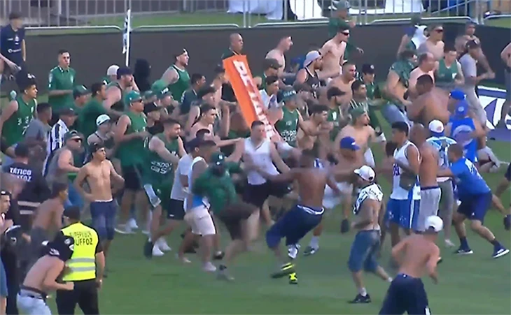Драка началась на 91-й минуте. «Куритиба» играла дома, забила – и сразу после болельщики «Крузейро» полезли через заграждения и побежали на поле.