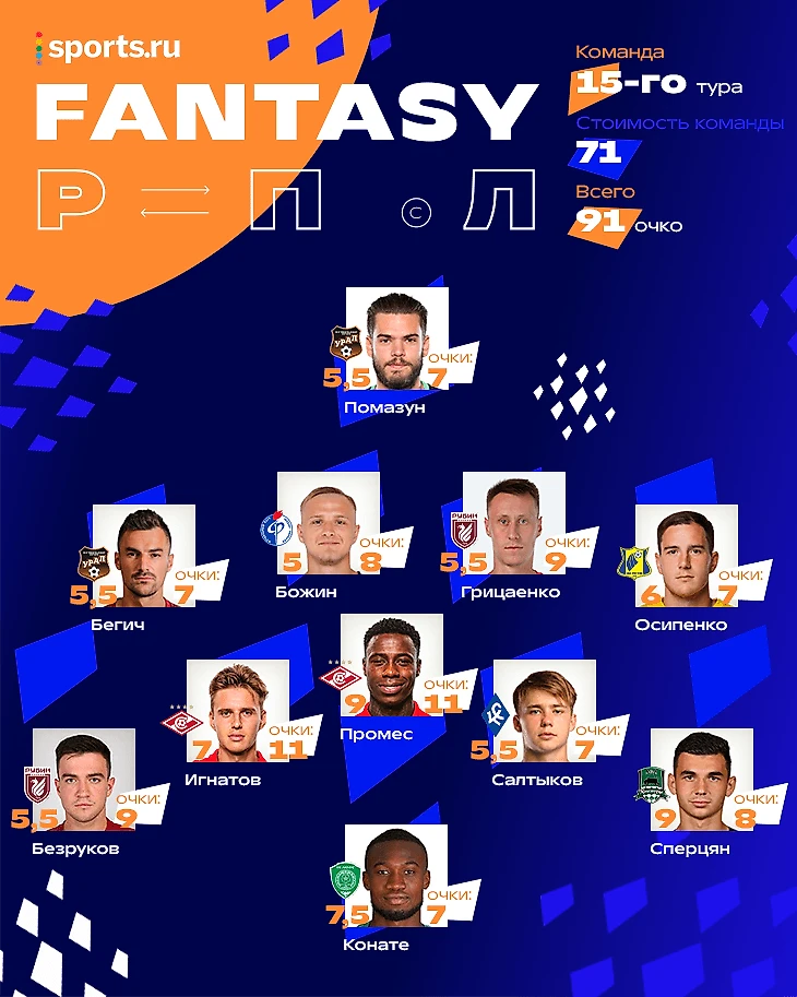 Сборная 15-го тура Мир РПЛ в фэнтези.