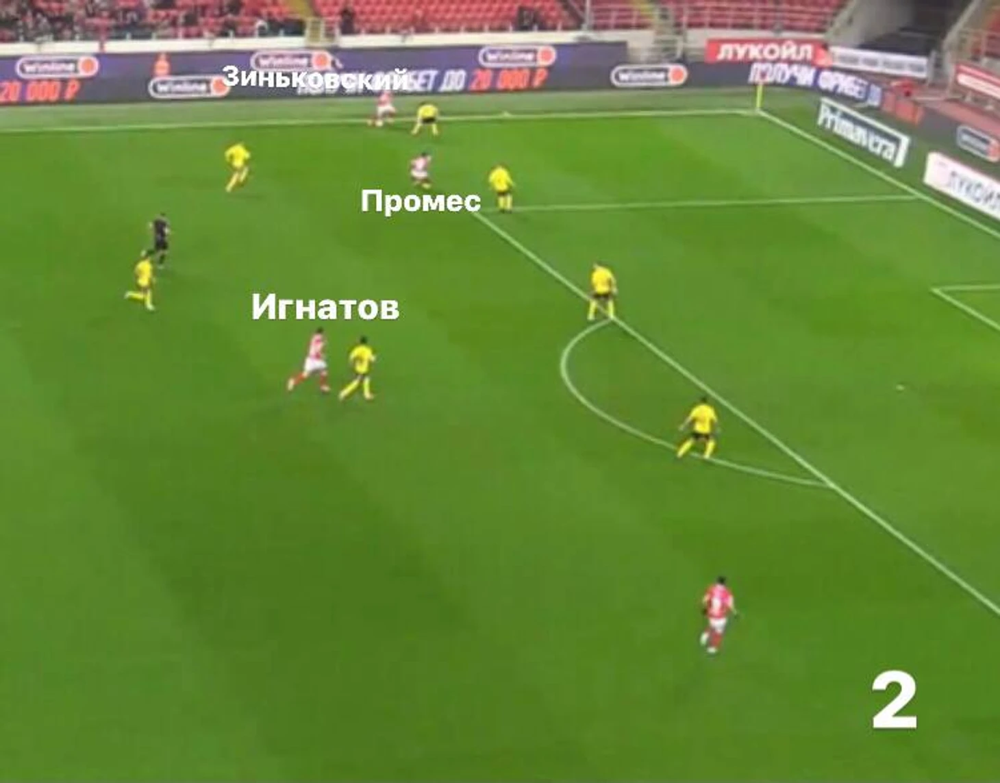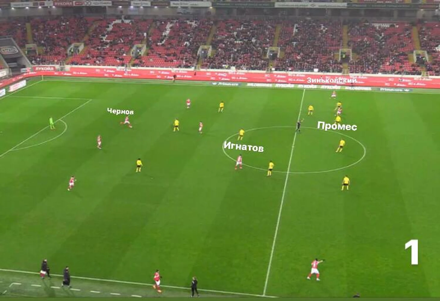 Голевая атака, приведшая к первому голу началась с передачи Чернова(Любопытно, что Спартак забил в меньшинстве - Дуарте оказывали мед.помощь).При этом правый фланг пустой.