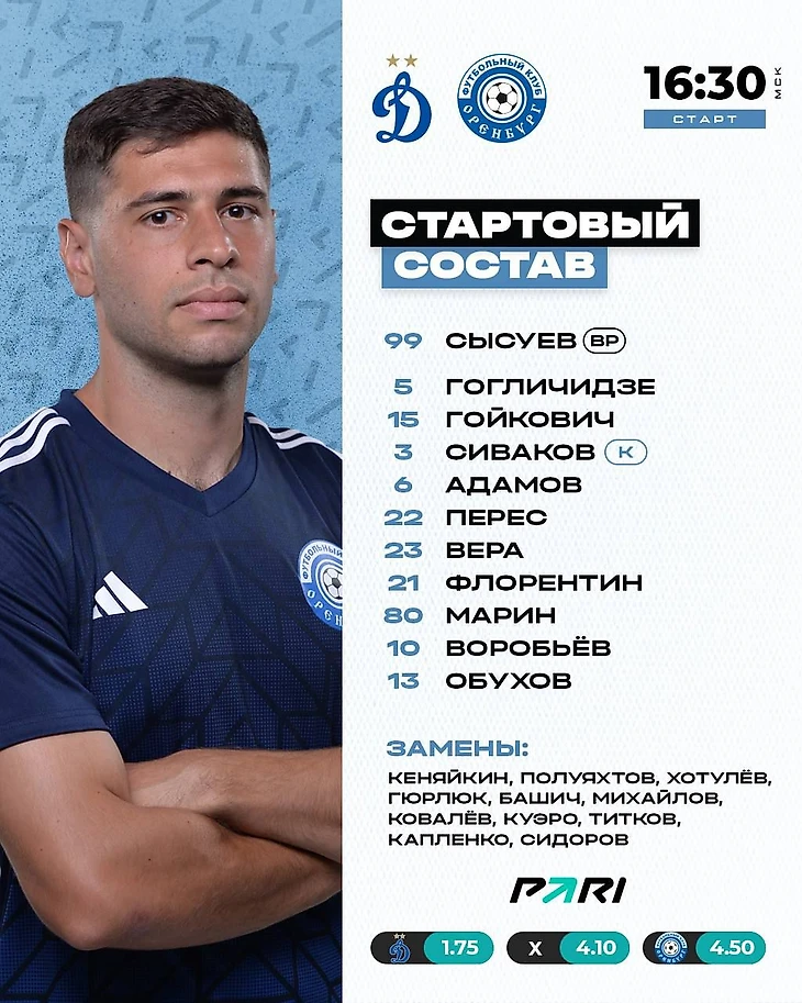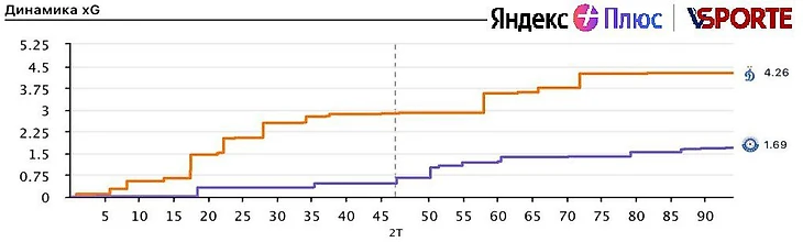 В первом тайме «Динамо» провело 44 атаки против 19 атак «Оренбурга», удары 14-3, владение 63%. Так выглядит статистика, когда команда доминирует, запоминайте.