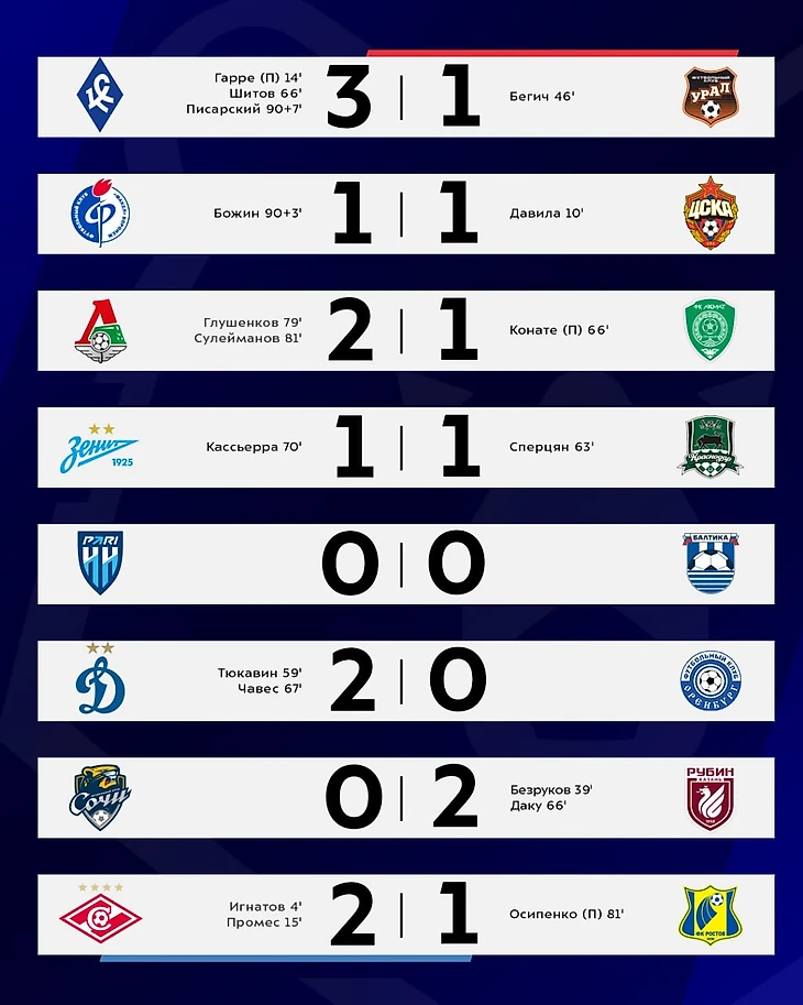Общий тренд тура - победы номинальных фаворитов над номинальными аутсайдерами. Но совсем безнадежно, на мой взгляд, выглядели только «Урал» и «Оренбург». «Ахмат» и «Сочи» проиграли по делу, но при определенных раскладах могли набрать очки.
