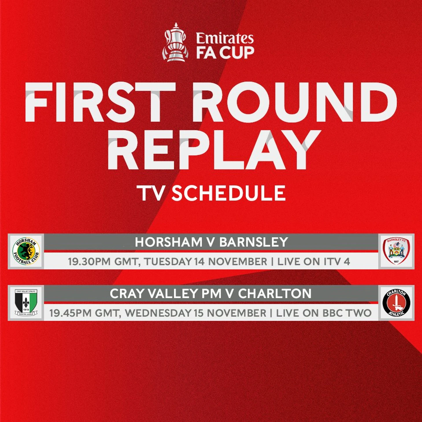 «Хоршем» из 7-го дивизиона и «Крэй Вэлли Пейпер Миллс» из 8-го дивизиона получат по 25 тысяч фунтов, большие деньги для данных уровней футбольной пирамиды страны. Нон-лига примет Лигу Один — профессиональный третий дивизион. Шансы пройти «Барнсли» и «Чарльтон» существуют.