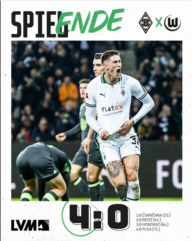 «Боруссия» Менхенгладбах 4:0 «Вольфсбург». «Жеребцы» разделались с «волками»