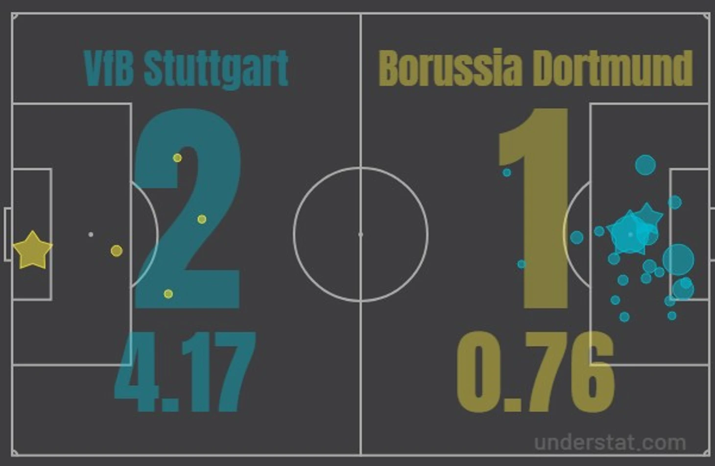 «Штутгарт» благодаря своему успеху сохранил третью позицию, прервал серию из двух поражений и поразил сумасшедшим xG.