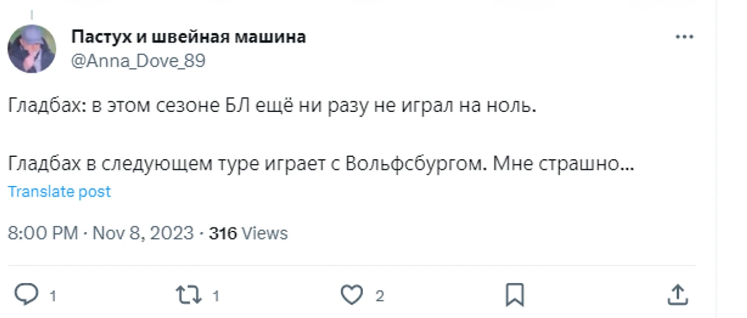 Вояж в Менхенгладбах закончился оглушительным провалом. Хозяева забили четыре безответных мяча и праздновали победу, зарядив своих болельщиков прекрасным настроением на уик-энд. Причем, обе команды пока не блещут в этом сезоне. За 11 туров дружины заработали по 13 баллов и находятся в середине турнирной таблицы. Хотя, как тем, так и другим знаком вкус, даже Лиги чемпионов.