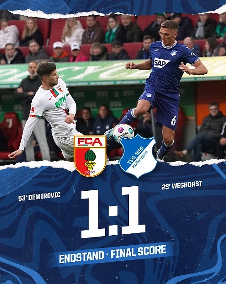 «Аугсбург» 1:1 «Хоффенхайм». Равнение на топ-10