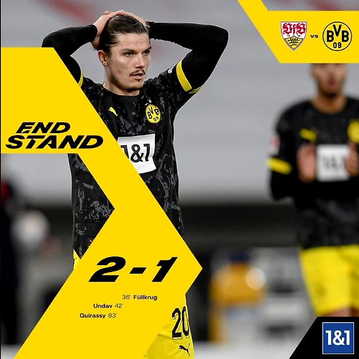 Хозяева быстро взялись за дело, но уже в начале первого тайма не реализовали 11-метровый. Крис Фюрих бесхитростно пробил в правый угол, но вратарь желто-черных Грегор Кобель блестяще среагировал, а защита не позволила затолкать мяч в ворота после сэйва. И тут снова сработало золотое футбольное правило: не забиваешь ты – забивают тебе. На 36-й минуте Никлас Фюллькруг вывел «шмелей» вперед, но натиск «Штутгарта» был настолько велик, что они отыгрались еще до перерыва усилиями Дениза Ундава, который был одним из самых ярких футболистов на поле.