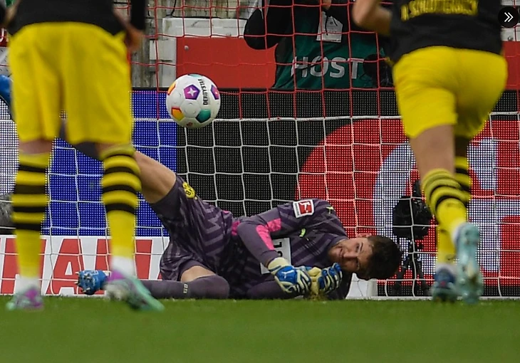 Впервые за 10 лет – с октября 2013 года – голкипер «Боруссии» отразил пенальти в Бундеслиге (тогда Роман Вайденфеллер отразил удар с точки Кевина-Принса Боатенга из «Шальке»);