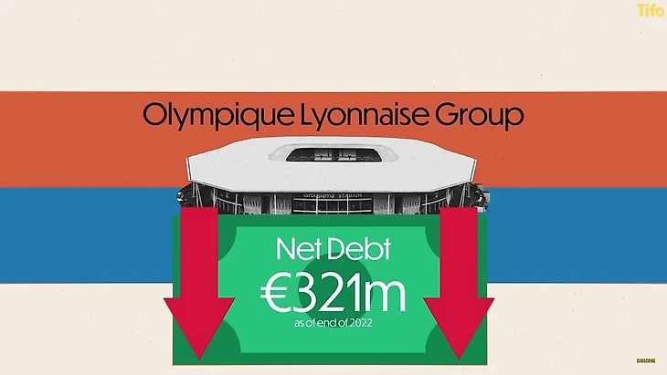 Чистая задолженность материнской компании клуба, «Olympic leonise group», на конец 2022 года в июле 2023 года была принудительно ограничена. Сделал это Финансовый надзорный орган французского футбола, после того, как постановили, что «Лион» предоставил недостаточные финансовые гарантии.
