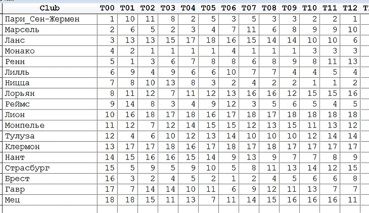 Далее Ницца(7->2), Монако(3->4). На 4 очка меньше  у Реймса(9->5) и Лилля.