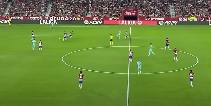 Гави теряет мяч в центре поля сразу же после стартового свистка и «Гранада» убегает в атаку забив гол на 17-ой секунде матча. Чуть позже счет становится 2:0. Подопечные Хави спасаются от поражения: Ламин Ямаль забивает в конце первого тайма, а Серджи Роберто в концовке матча.