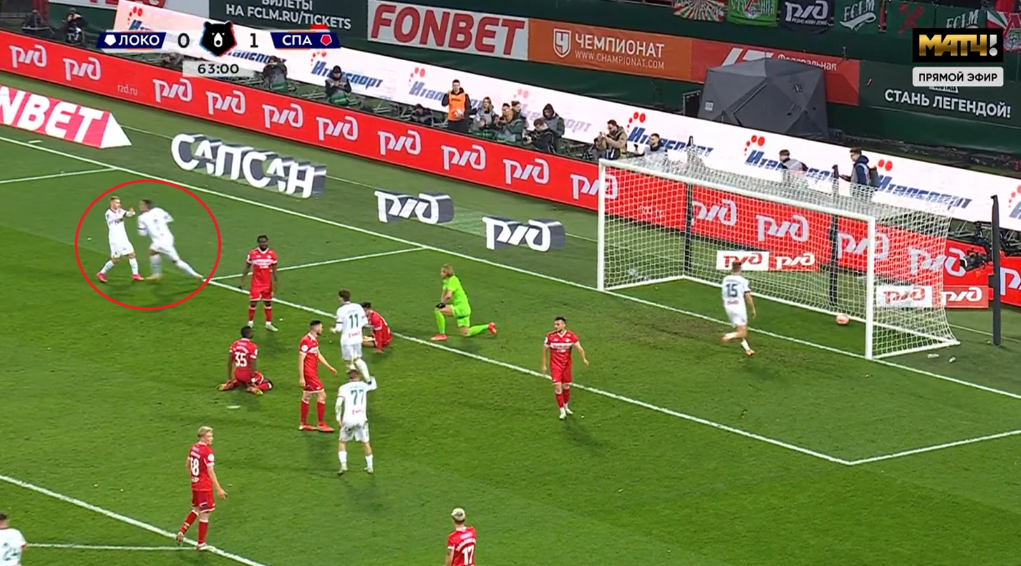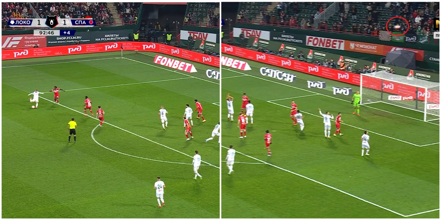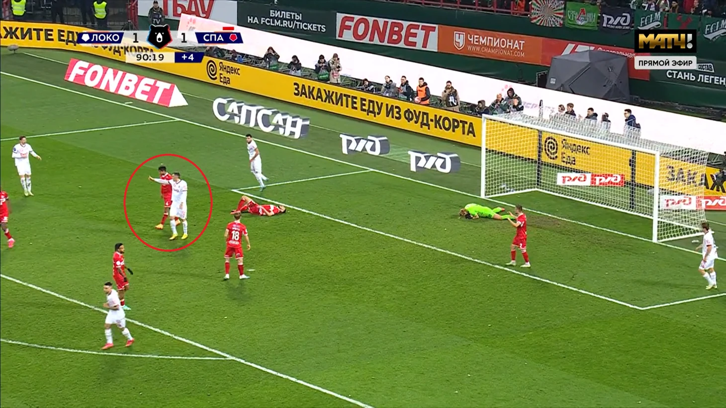 Разберемся по порядку. В матче «Локомотив» – «Спартак» оба находились на поле с 58-й минуты – Пиняев в этот момент вышел на замену, а Дзюба играл с самого начала. Показываем то, что было видно по телекартинке.