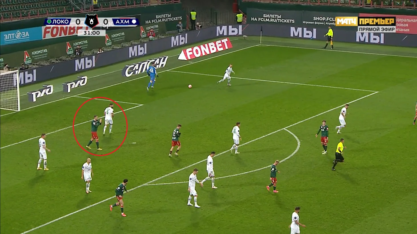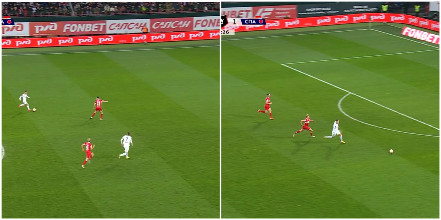 Дзюба отметил попытку Пиняева пойти в дриблинг – тот заработал угловой. Через минуту Пиняев сделал короткий пас на Дзюбу в штрафной, но момент закончился еще одним угловым.